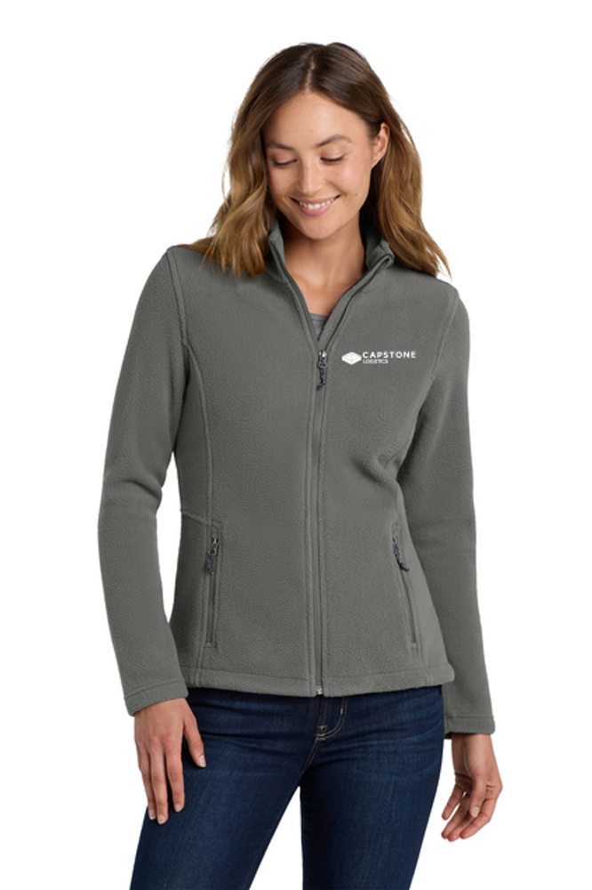 This exceptionally soft midweight fleece jacket will keep you warm during everyday excursions and it's offered at an unbeatable price. 13.8-ounce 100% polyester Twill-taped neck Reverse coil zipper Chin guard Bungee cord zipper pulls Front zippered pockets Open cuffs
